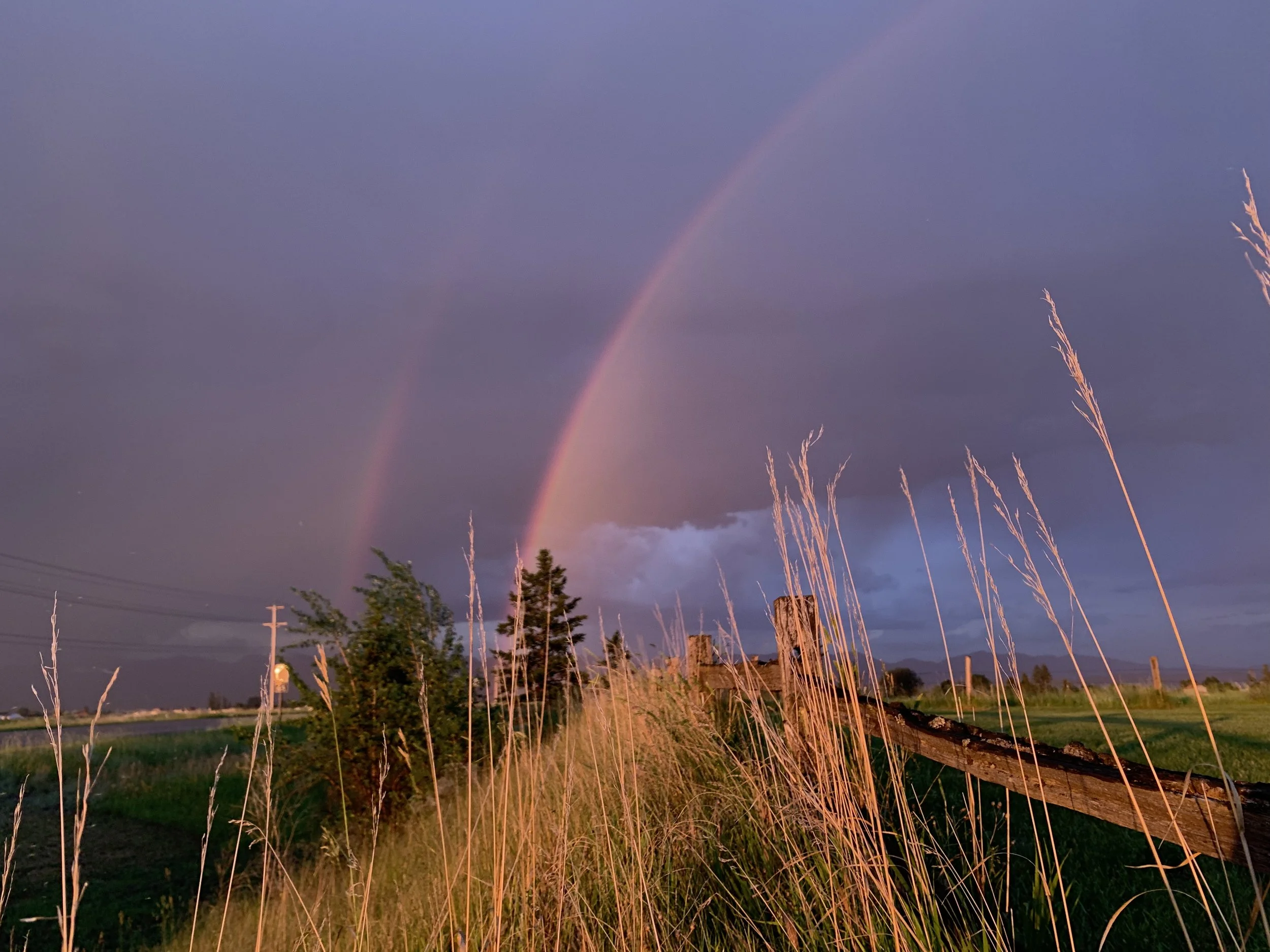 On my sister’s birthday, I asked for rainbows. It was a kaleidoscopic weather day, in which the clouds move faster than your racing heart and the sun and darkness shift like smoke and the rain falls on your upturned face but so does the light upon your shoulders…